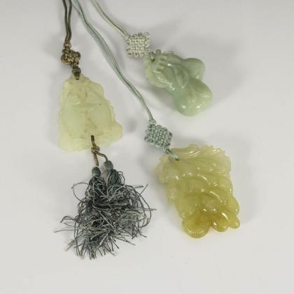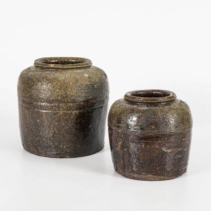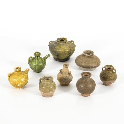 Nach den vorliegenden Beschreibungen handelt es sich um: Sawanklalok-Ware 14.-15. Jahrhundert. / Siamese (Thai) circa 14.-15. Jahrhundert. / 4 Teile China, Sung-Yuan Dynastie, 11.-14. Jahrhundert. An einem Stück fehlt ein Henkel, sonst sind die Stücke unbeschädigt, lediglich mit Altersspuren