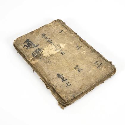 Holzschnitt, gedruckt auf Reispapier, starke Gebrauchsspuren