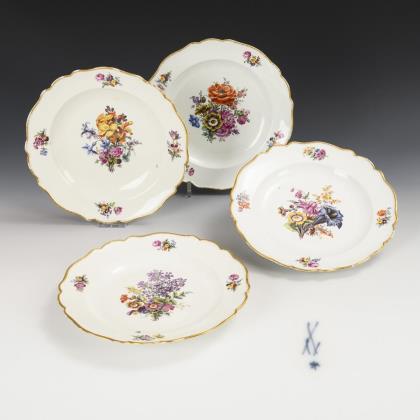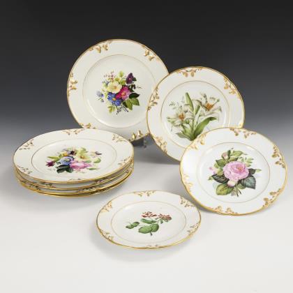 Kredenzteller und 9 Teller mit Blumenmalerei. Gotha.