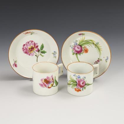 2 Empire-Tassen mit Blumenmalerei. Meissen.