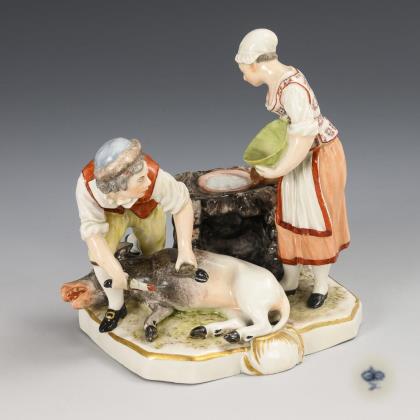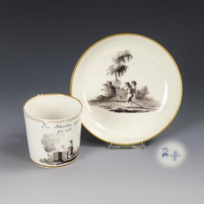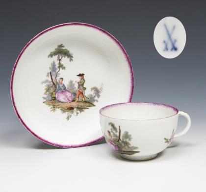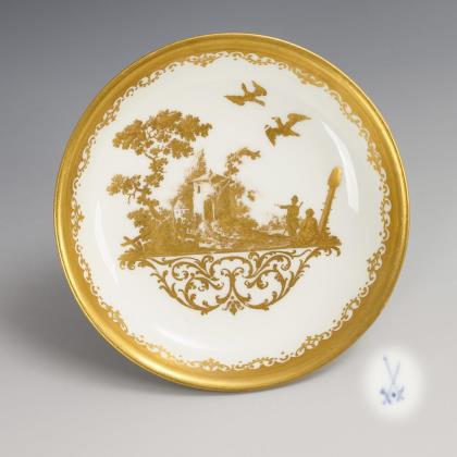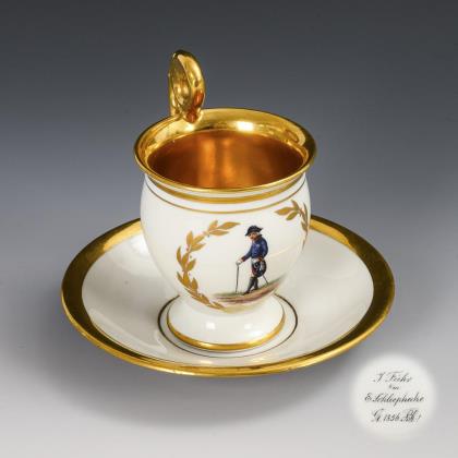 Biedermeier-Tasse mit Jagdmotiv. Meissen.