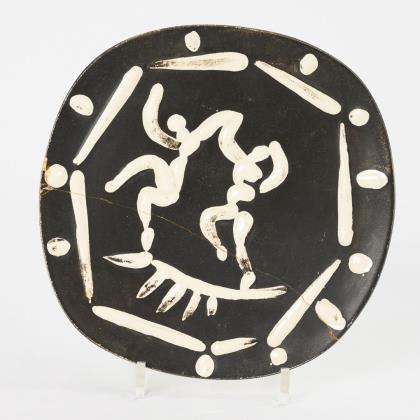 Picasso-Teller "Deux Danseurs" (Zwei Tänzer). Werkstatt Madoura, Georges und Suzanne Ramié.
