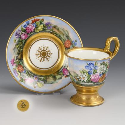 Französische Empire-Tasse mit Blumenmalerei. Lebœuf.