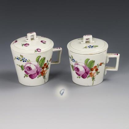 2 barocke Deckeltassen mit Blumenmalerei. Gera.
