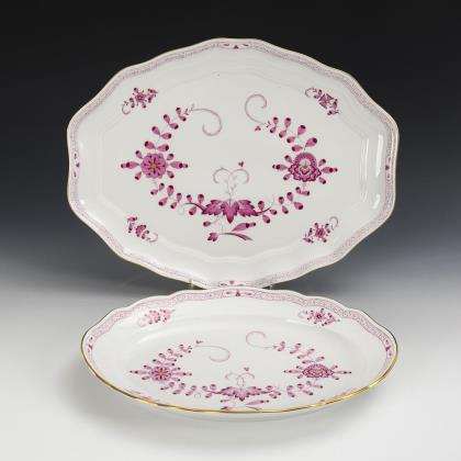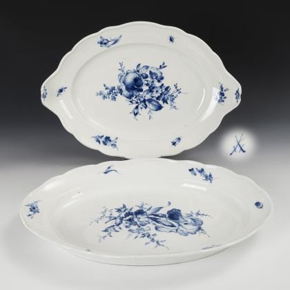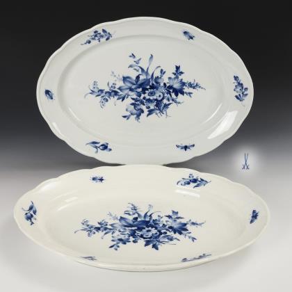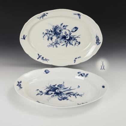 2 Ovalplatten mit Blaumalerei. Meissen.