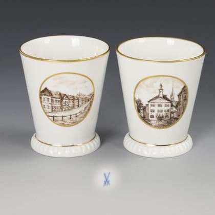 2 Ansichtenbecher "Bad Kissingen". Meissen.