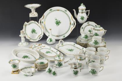 48 Teile Herend-Geschirr mit grüner Kakiemonmalerei. Herend.