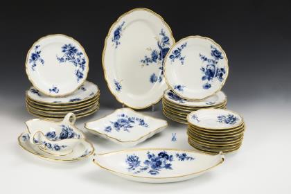 29 Teile eines Speiseservice mit Blaumalerei. Meissen.