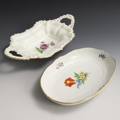 Henkelschale und Ovalschale mit Blumenmalerei. Meissen.