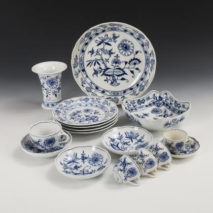 16 Teile Zwiebelmuster-Porzellan. Meissen.