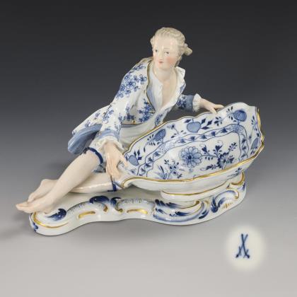 Tafelaufsatz "Blaue Orchidee auf Ast". Meissen.