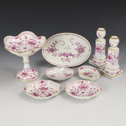 9 Teile Porzellan mit Weinlaubdekor. Meissen.