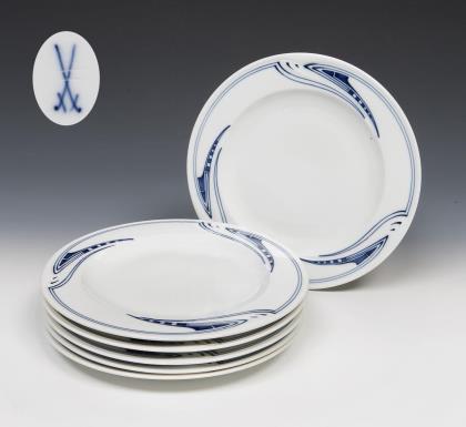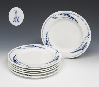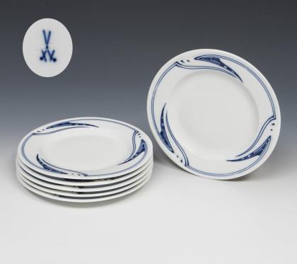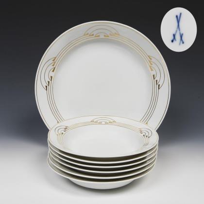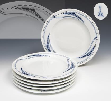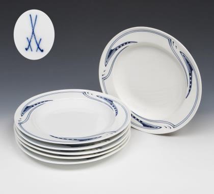 6er Satz Jugendstil-Suppenteller. Meissen.