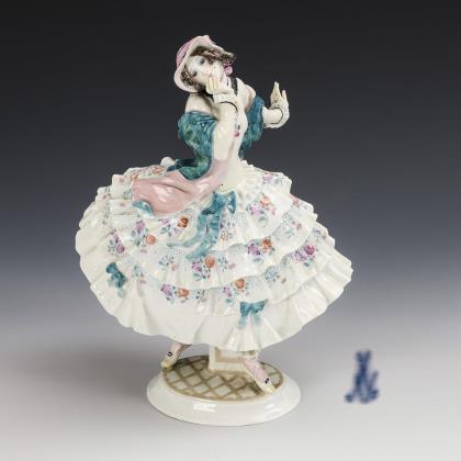Modell-Jahr: 1907. Naturalistisch bemalt. Pressmarken, Malermarke, Schwertermarke mit Punkt am Sockel