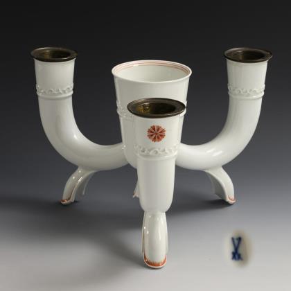 Modell-Jahr: 1912. Das Modell "Ceres" wurde zum 150-jährigen Jubiläum der Manufaktur 1913 geschaffen. Reliefdekor mit Füllhörnern und Ährenkranz, Bemalung in Gold. Pressmarken, Malermarken, grünes Künstler-Signet, blaue Zeptermarken, rote Reichsapfelmarken, schwarze Kriegsmarken