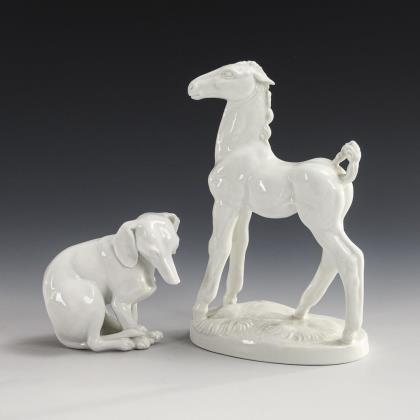 Fohlen und Dackel. Meissen.