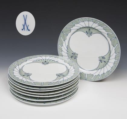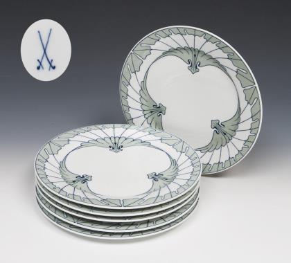 6er Satz Jugendstil-Essteller. Meissen.