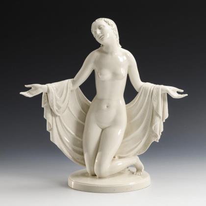 Auf einem Rocaillesockel tanzende junge Frau
