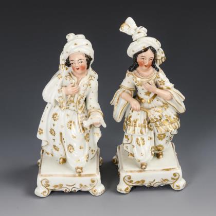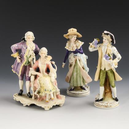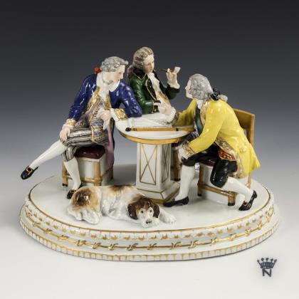 Rokokoherr (H 16 cm) und Rokokodame (H 20 cm) an einem Schachtisch (H 9 cm) sitzend