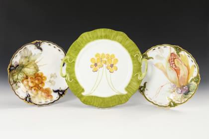 3 Jugendstil-Teller mit Fruchtmalerei