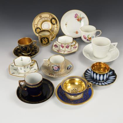 10 verschiedene Mokkatassen (u.a. KPM Berlin, Rosenthal, Fürstenberg, Krautheim)