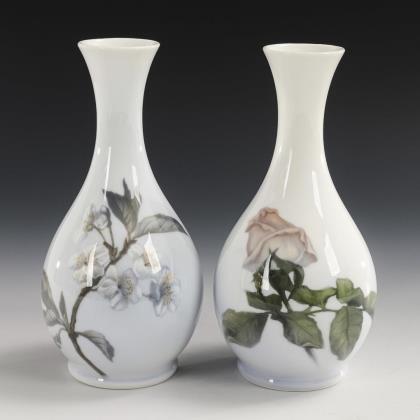 Birnvasen: 1x mit der schauseitigen Darstellung einer Rose, 1x mit der Darstellung eines blühenden Kirschzweiges