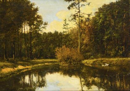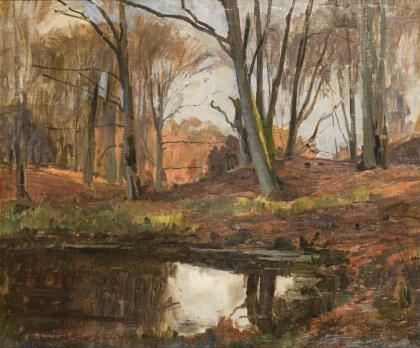 JUNGBLUT, Johann (1860 Saarburg - 1912 Düsseldorf). Waldlandschaft mit Teich.