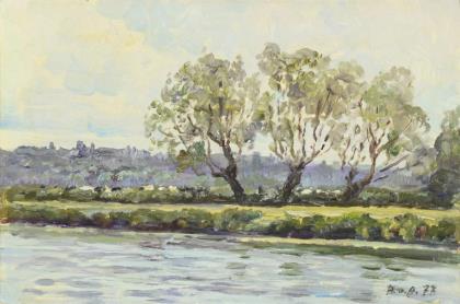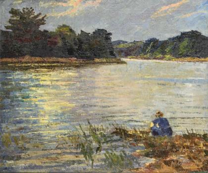 Monogrammist "A.v.H.": Impressionistische Flusslandschaft.
