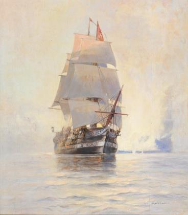KAUFMANN, Adolf (1848 Troppau - 1916 Wien). "Eingang zum Hafen von Bordeaux - Sonnenaufgang".