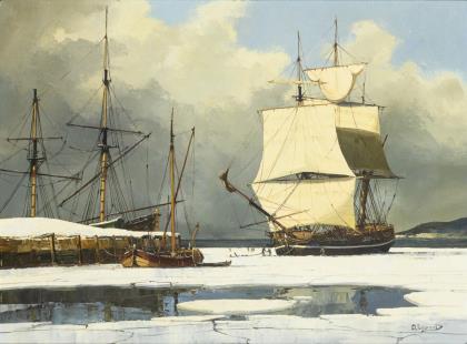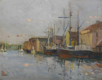 CHRISTENSEN, Svend Sinding (1898 Kopenhagen - 1980 ebd.). Schiffe im Hafen.