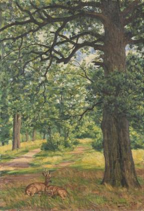 DRAEWING (DREWING), Peter Paul (1876 Schwaan - 1940 Eisenach). Rotwild am Waldrand.