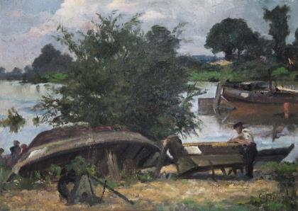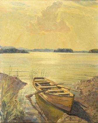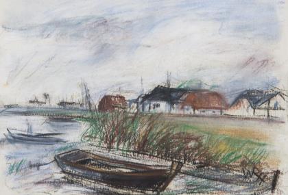 HEMPFING, Wilhelm (1886 Schönau - 1948 Karlsruhe). Kahn am Seeufer.