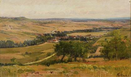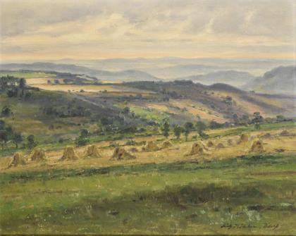 KÖHLER, Fritz (1887 Moritzburg - 1972 Düsseldorf). Weite Eifellandschaft mit Kornhocken.