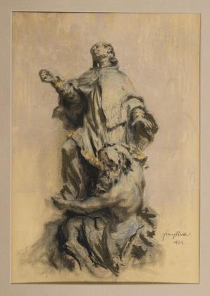 HUTH, Franz (1876 Pößneck - 1970 Weimar). Skizze der Skulptur des heiligen Nepomuk.