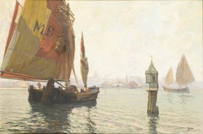 HEES, Gustav Adolf van (1862 München – 1927 ebd.). Fischerboote in der Lagune von Venedig.