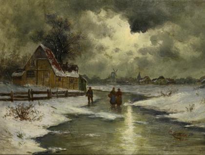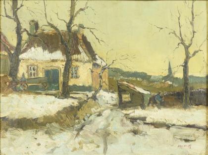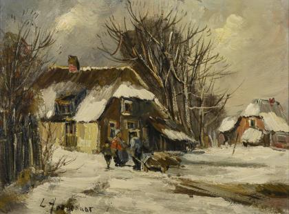 HOEVENAAR, L.. Winterliche Dorflandschaft.