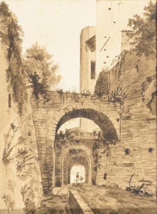 SCHUBERT. Ruine in bergiger Landschaft.
