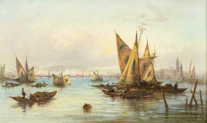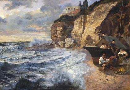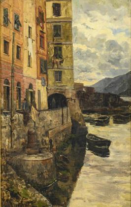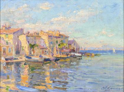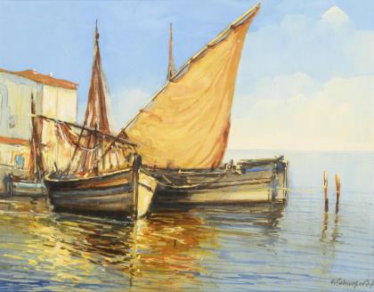 Undeutlich signiert: Fischerboote am Mittelmeer.