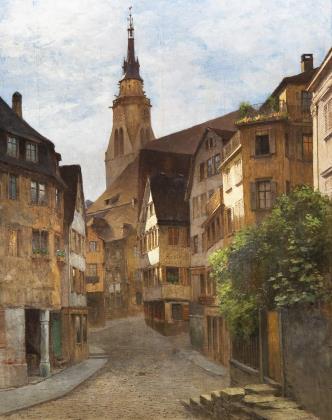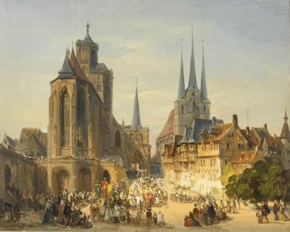 Wohl Vorstudie zum größeren Bild "Am Dom zu Erfurt" von 1848, welches heute im Landesmuseum Hannover zu sehen ist