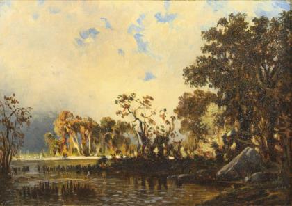 RAVENSCROFT, Peter (* um 1830 London). Herbstliche Landschaft mit Staffage.