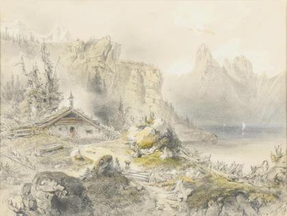 SATTLER, Hubert (1817 - 1904 Wien). Gebirgslandschaft mit See.