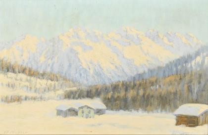 WALCH, Paul Johann (1881 Leutstetten/Starnberger See - 1958 ebd.). "Sonnenspitze bei Ehrwald im Schnee".