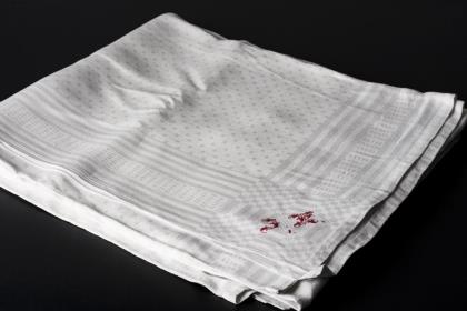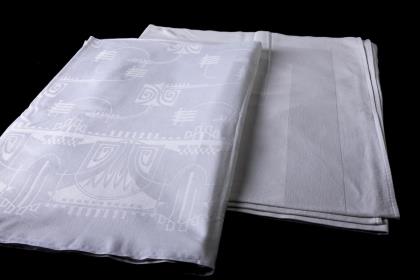 Tuch mit stiltypischen Dekoren und schlichtes Tuch mit breitem Streifendekor