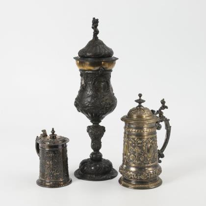 Großer Deckelpokal und 2 Bierhumpen Historismus. WMF.