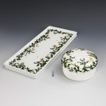 Tablett und Dose aus einem Rauchservice. Meissen.