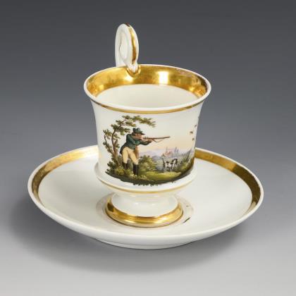 Biedermeier-Tasse mit Jagdmotiv. Meissen.