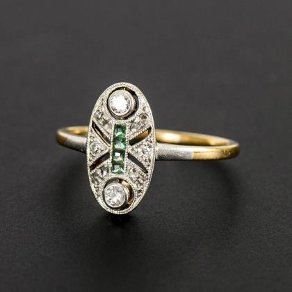 Art-déco-Ring mit Smaragden und Altschliff-Diamanten.