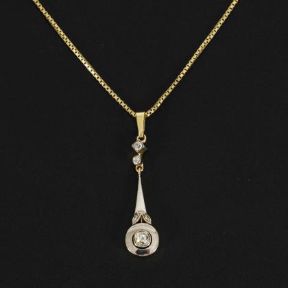 Art-déco-Anhänger mit Altschliff-Brillant und Altschliffdiamanten an Kette.