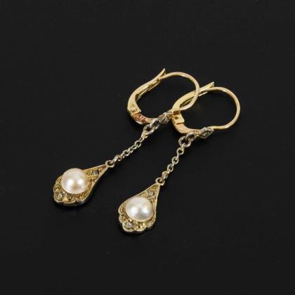 Art-déco-Ohrhängerpaar mit Halbperlen und Diamantrosen.