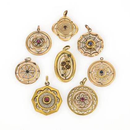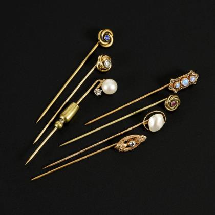7 Krawattennadeln um 1900.